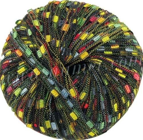 Ladder Ribbon is a ladder yarn with small, brilliant panels of color suspended between 2 rows of black or like-colored yarn. With Ladder Ribbon yarn, just the simplest stitches would produce elegant and sensational tops, sweaters, jackets, scarves and shawls. Ladder Ribbon ladder yarn may also be used to make beautiful necklaces and jewelry.